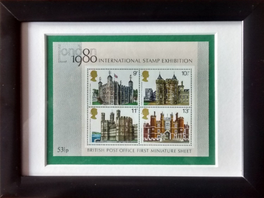 The stamps themselves were first issued in I978 (as shown in the second image). The miniature sheet shown framed was issued in 1980 and was the very first miniature sheet to be produced in the UK. Today a miniature sheet is issued with virtually every new set of stamps so this one is something special.