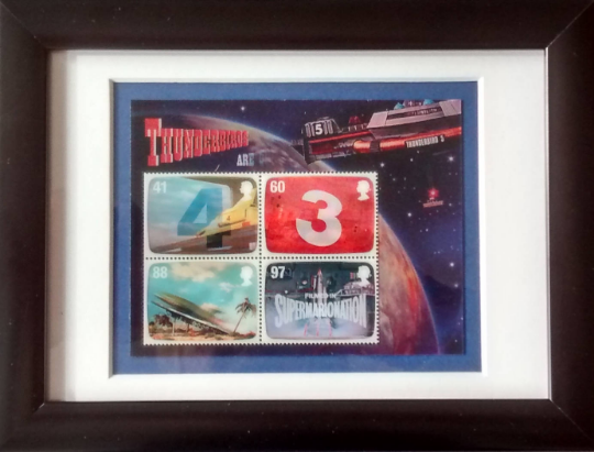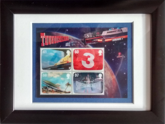 Thunderbirds framed postage stamps show Thunderbirds 1,2, 3 and 4. They use microlenticular technolgy so that each stamp is a hologram and the images change when the stamps are viewed from different angles to show either the numbers 1,2, 3 or 4 or the launch sequence of each Thunderbird vehicle. Yes they are genuine GB postage stamps. See the other framed stamps images to see the different views when the stamps are seen from a different angle