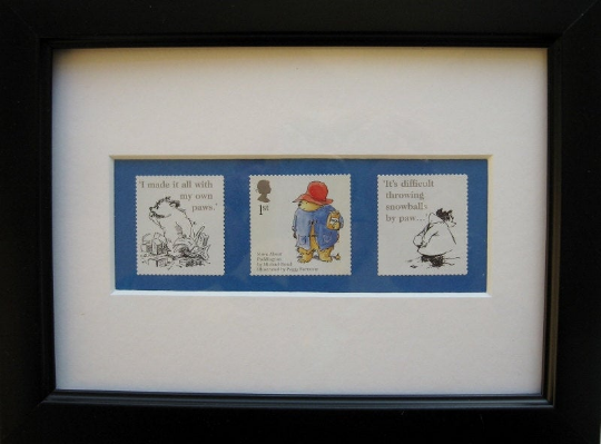 This second framed set of stamps shows Paddington Bear with two drawings of Paddington and comments on what it's like being a bear. Please note the two illustrations (Smilers) are not postage stamps but were issued by Royal Mail in 2006 as envelope stickers.